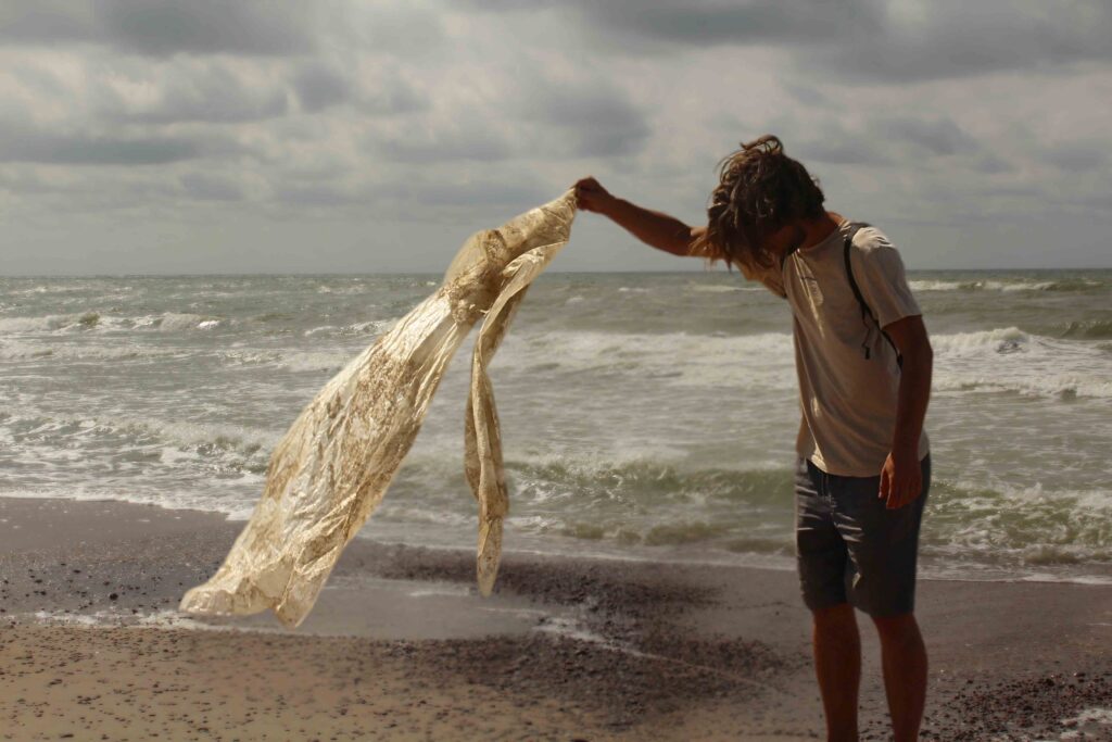 Baltijas jūra ir viena no piesārņotākajām pasaulē. [1] Kampaņas “Mana jūra” ietvaros mēneša ilgā pārgājienā gar Latvijas jūras robežu brīvprātīgie kopā ar ekspertu, Jāni Ulmi, veic pludmales atkritumu monitoringu. Viens no izplatītākajiem atkritumu veidiem ir plastmasa, it īpaši mikro-plastmasa, kas var veidoties attēlā redzamās plēves noārdīšanās procesā un tikt nepamanīta. Tā ir smiltīs, ūdenī, gaisā. Mūs ieskauj plastmasas vējš.